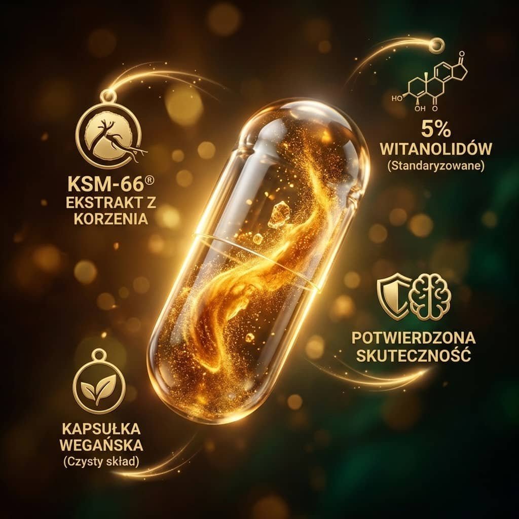 Ekstrakt KSM-66® pomaga obniżać poziom kortyzolu (hormonu stresu), wspiera układ odpornościowy i sprawność seksualną. Jest poddawany rygorystycznym kontrolom, które zapewniają najwyższą jakość.