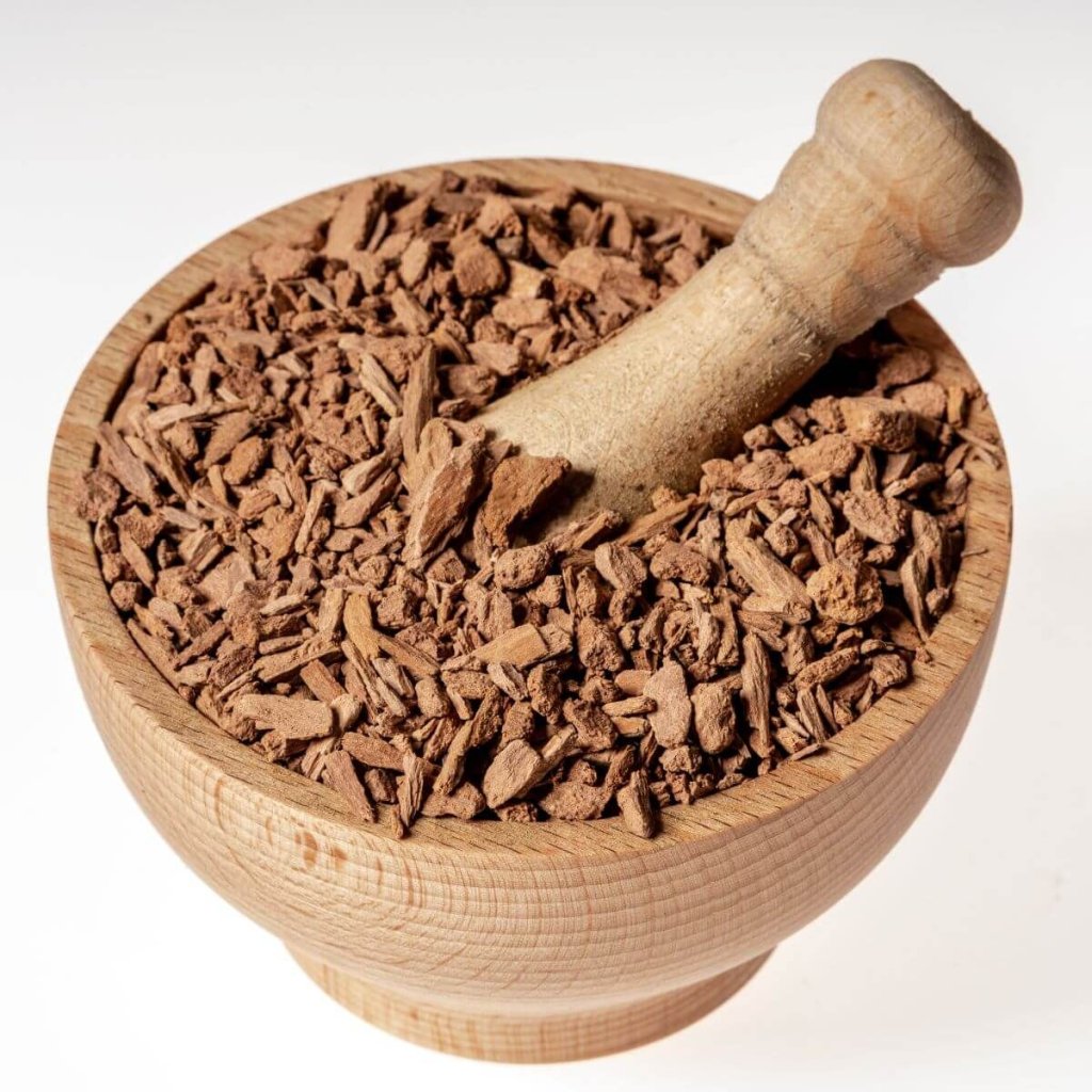 100% peruwiańskie zioło Chuchuhuasi (Maytenus laevis) – suszona, rozdrobniona kora drzewa.